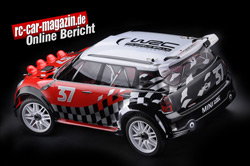 Im Gegensatz zum Buggy findet sich am Mini keine Heckspoiler-Halterung. Stattdessen findet man dort eine Heckbrücke mit zwei verstellbaren Karosseriestützen vor.
