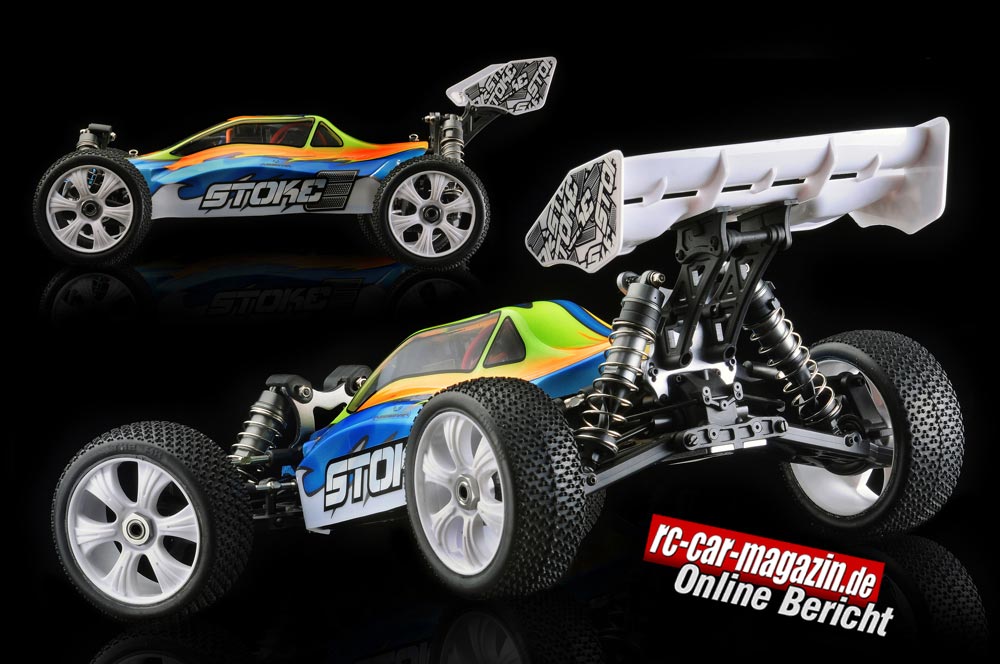 Ein gutes Beispiel für solch ein Rundum-Sorglos-Einsteigerset ist der 4WD-Elektrobuggy STOKE E im großen Maßstab 1:8. Er stellt einen guten Kompromiss zwischen einem Hochleistungs-Wettbewerbsbuggy und einem problemlosen Fahrzeug für den Einsteiger dar.