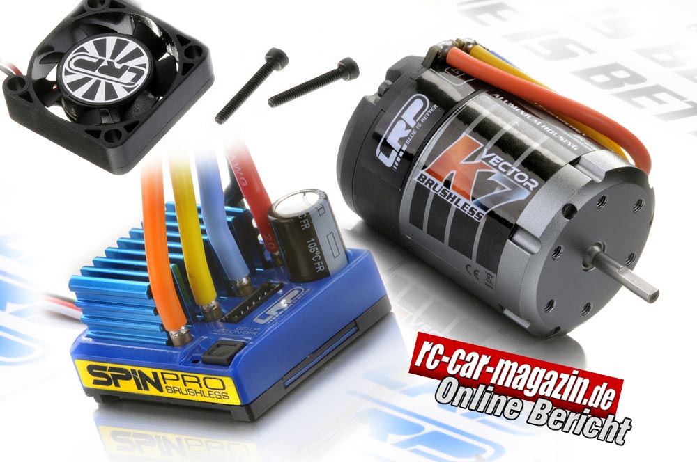 Diesen Vorgaben entspricht auch eine aktuelle Motor / Regler-Kombination aus dem LRP-Angebot, nämlich die Vector K7 Reihe in Verbindung mit den SPIN-Fahrtenreglern.
