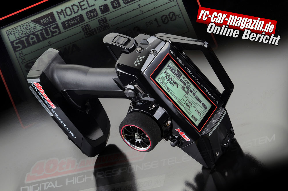 Bei der Fernsteuerung an sich ist alles genau so geblieben wie bei der normalen M12. Lediglich beim Einschalten erkennt man kurz den Schriftzug „40 th Anniversary – SANWA“, bevor ins Eingangsmenü gewechselt wird.