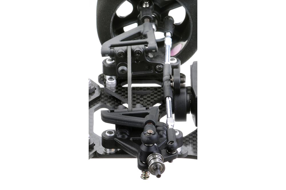 Die Hinterachse besteht wie auch beim XII aus einem 6,3 mm dickem Kohlefaserstab. Die Lagerung erfolgt in Präzisions-Bundlagern.