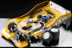 Die Stoßdämpfer haben in diesem Falle Aluminiumgehäuse, ansonsten unterscheiden sie sich nicht von den tausendfach bewährten XRAY-Dämpfern.