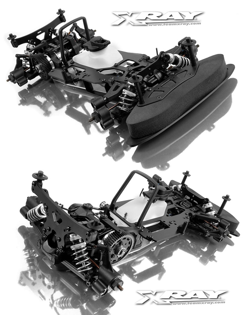| | Der erfolgreiche 1:10-Nitro Tourenwagen NT1 kommt nun auch als preiswerte Raycer Version in die Händlerregale. Die wichtigen Basiszutaten des ohnehin schon extrem schnellen EM-Modells wurden beibehalten und durch einige neue Teile ergänzt. Der Baukasten enthält weiterhin alle benötigten Teile in der hervorragenden XRAY-Qualität und ermöglicht dem Fahrer die Leistung eines NT1 voll ausschöpfen zu können – bei einem deutlich geringeren Preis. Selbstverständlich gehört die einstellbare XCA-Kupplung ebenso zum Lieferumfang wie hochwertige Getriebeteile aus HUDY-Federstahl, eine vollständige Kugellagerung, etliche Leichtbauteile aus 7075 T6 Aluminium, Ferodo-Bremspads oder aus speziellen Kunststoffen hergestellte Teile wie zum Beispiel die Aufhängungsteile für eine leichte Abstimmung bei sehr guten Festigkeitswerten.