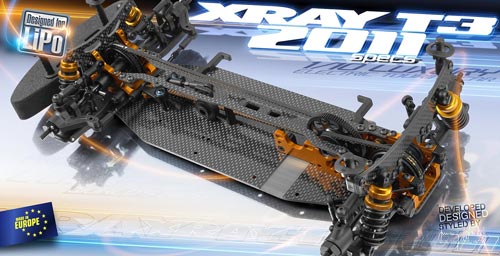| | Bei der Weiterentwicklung des beliebten T3 zur T3`11- Version wurde besonderer Wert auf Detaillösungen gelegt. Neben den XRAY- üblichen, sehr hochwertigen Materialien, konnte das Chassis nochmals verkleinert werden und trägt nun auch den immer öfter eingesetzten Hardcase-LiPo-Akkus noch stärker Rechnung. Die Lenkung wurde zur Gewichtsoptimierung auf der Mittelachse platziert und auch das Lenkservo rückte näher an diese heran. Das Modell gewinnt so an Kurvenwilligkeit und Agilität, ohne nervös zu werden. Auch die Feinjustierung bei der Abstimmung der Dämpfer gelingt dank der neuen oberen Dichtungen noch besser. Natürlich ermöglicht der T3`11 das Einstellen des Chassisflex über das obere Topdeck ebenso wie eine möglichst effiziente Übertragung der Antriebsleistung über zwei Riemen. Lieferbar seind eine EU-Version (300017) und eine speziell für Teppichstrecken konzipierte US-Version (300018)
