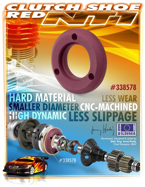 | | Gerade die immer stärkere Leistung von Nitro-Motoren verlangt Höchstleistungen von der Kupplung. Der Kupplungsbelag ist dabei von entscheidender Wichtigkeit. XRAY präsentiert mit der High Dynamic – Red-Version einen im Durchmesser kleineren Belag. Das Material ist härter und weniger anfällig für Verschleiß – ideal für Strecken mit mittlerem bis hohem Griffniveau. Der neue Kupplungsbelag kann bei der Standard XCA-Kupplung ebenso genutzt werden wie bei der Tuning Variante High Dynamic XCA.