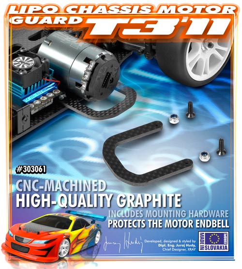 | | Der neue Motorbügel für den Einsatz am T3`11 ist aus hochfestem und dennoch extrem leichtem Kohlefasermaterial gefertigt. Die Endkappe des Motors wird so zuverlässig bei einem Unfall geschützt. Geliefert wird der Bügel inklusive des benötigten Befestigungsmaterials.