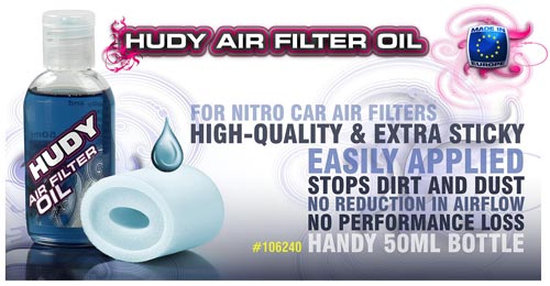 | | Für den optimalen Schutz des teuren Verbrennungsmotors gibt es nun exklusiv von Hudy ein spezielles Luftfilteröl (50 ml). Dieses sorgt für eine verbesserte Benetzung der Schaumstoffoberfläche des Luftfilters und verhindert somit zuverlässig das Eindringen von Schmutzpartikeln in den Brennraum. Damit sofort ersichtlich ist, an welchen Stellen schon Öl aufgetragen ist, wurde es blau eingefärbt.