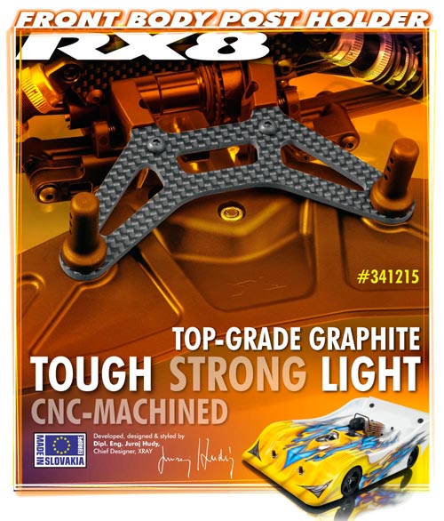 Um die vorderen Karosseriehalter verstärken zu können, sind nun aus hochwertiger Kohlefaser hergestellte Halter lieferbar. Diese kleine Platte senkt nicht nur das Gewicht und ist stabiler, sie sieht auch noch gut aus.