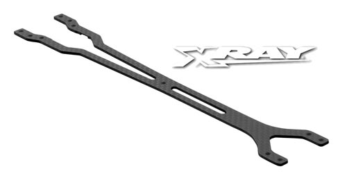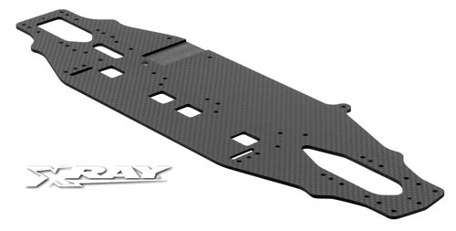 | | Gerade bei Rennstrecken mit sehr wenig Grip ist der Einsatz eines flexibleren Chassis sehr sinnvoll. Das schmalere Layout ermöglicht generell mehr Flex des Modells, hinzu kommt die etwas geringere Dicke von 2 Millimetern. Natürlich wird diese Chassisplatte aus demselben hervorragenden und hochfesten XRAY-Kohlefasermaterial wie die Serienteile des T3 2012 gefertigt.