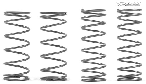 | | Um die Abstimmung der Stoßdämpfer des XB808 noch weiter verfeinern zu können, sind nun neue progressive Dämpferfedern erhältlich. Diese Federn sind zunächst weich und werden härter, je weiter das Modell einfedert. Die Federn werden einzeln vermessen und nur die zwei am besten zueinander passenden Federn kommen in das Set. Ideal geeignet sind diese Federn für Strecken mit mittlerem bis hohem Griffniveau. Die progressiven Federn werden im Set zu je zwei Stück ausgeliefert und es sind folgende Versionen erhältlich:
