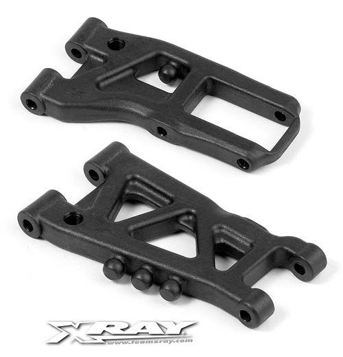 | | Extrem leicht und aus kohlefaser- verstärktem Kunststoff gefertigt, überzeugen die neuen unteren Querlenker für den XRAY T2 und T3 vor Allem im harten Renneinsatz auf Strecken mit sehr hohem Griff. Auf derartigen Strecken wird das mitunter beobachtete Überhitzen und anschließende starke Nachlassen der Reifen zuverlässig vermieden. Einzeln lieferbar sind die vorderen Querlenker unter Bestellnummer 302167 und die hinteren sind unter Bestellnummer 303167 erhältlich.