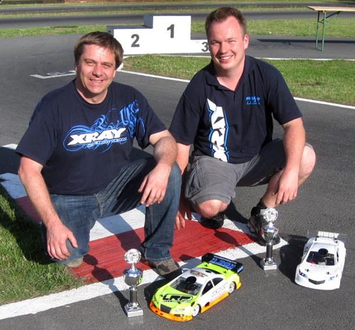 So probierten wir ein paar Sachen in den Vorläufen aus und es ging langsam besser. Zum Finale haben wir dann noch die Karosse und die Dämpferposition verändert. (Danke Ralf). Das Auto war dann im Finale sehr gut und ich war der Einzige, der bei der Leistung 5 Minuten mit einer Tankfüllung fahren konnte (Danke Marcel). So konnte ich das Rennen von Startplatz 4 aus, vor Bernd, gewinnen.