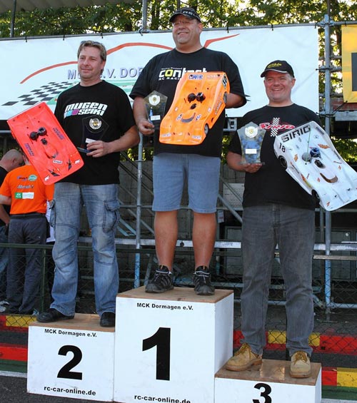 Auch in der Klasse 2 waren Xray und Orcan gut vertreten. Tim Vogels fuhr mit Orcan-Power auf den achten Platz der Vorlaufrangliste und stieg als Dritter seines Halbfinales auf. Im 45-minütigen Endlauf hatte der Belgier, Stammpilot im Sportkreis West, durchaus eine Podiumsplatzierung im Visier, doch nach 41 Runden bremste ein technischer Defekt seine Fahrt, es blieb der siebte Gesamtrang. Guter Zwölfter wurde Orcan-Pilot Thomas Reiche, Heiko Kube steuerte seinen Xray RX8 auf Rang 13.