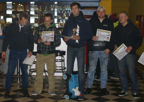 Da der Cup in nur 3 Läufen gefahren wird und Einer als Streicher dient hatte ich durch meinen Pleulabriss im Januar eine vordere Truggyplatzierung schon abgeschrieben und mir bei der Wahl der Karo einem kleinen Spaß erlaubt - s. Siegerehrung...