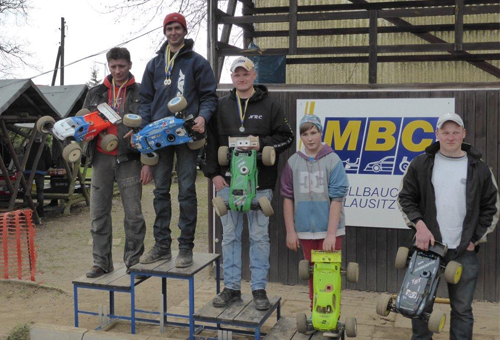 | | 28.04. Der Einstieg in den Oberlausitzcup fand dieses Jahr auf der Rennstrecke des MBC Lauba statt. Die ursprünglich für 1:10 Modelle gebaute Strecke liegt mitten in einem Wohngebiet so das Sie die Besonderheit hat nur zweimal im Jahr, zu den Läufen des OLC, mit Nitro´s befahren werden zu dürfen. Steffen, Jan, Patrick und ich starteten noch bei Regen und auch an der Strecke fielen ein paar Tropfen. Ich hatte von Landshut noch mächtig die Nase voll von "Lehmbomben" und fuhr deshalb weder Training noch ersten Vorlauf. Patrick der sein erstes Rennen in der Fun Klasse fuhr wollte