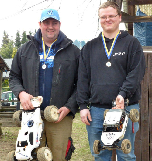 In den Finalen konnte Steffen schon bei seinem ersten Outdoor Elo-Buggy Rennen auf fremder Strecke einen Laufsieg erringen,am Ende war es ein zweiter Platz in der stark besetzten Klasse. Bei den Nitro´s hatte ich jeweils das ruhigste Händchen und am wenigsten Pech und konnte mir dadurch den Doppelsieg sichern. Steffen landete nach 3!!! Reifenwechseln auf Platz 5.