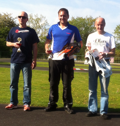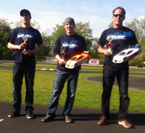 Bei den 1/10ern zeichnete sich gleich ab, dass der Sieg wohl unter drei Fahrern ausgemacht wird. Die Pole holte sich Andreas Schuch mit 18 Runden in 5:09,2 Min. vor Dennis Sting mit 18 Runden in 5:10,2 Min und David Ranft mit 18 Runden in 5:12,7, Min.