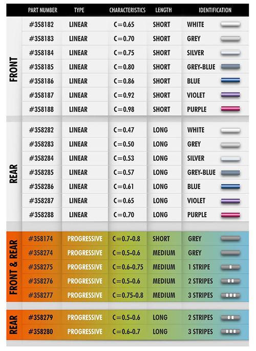 | | Der erfolgreiche XB9 lässt sich mit den neuen progressiven Federn nochmals besser und einfacher auf die Strecke abstimmen. Die Federn sind zu Anfang des Einfedervorgangs weich und werden zum Ende hin deutlich härter. Erhältlich sind folgende Sets mit jeweils zwei identischen Dämpferfedern:
