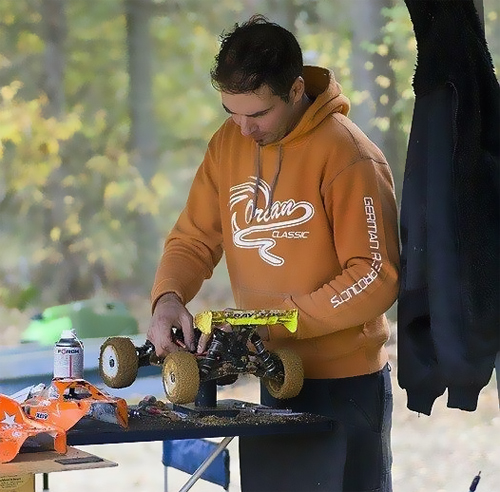 In meinem ersten Rennen in der Elobuggyklasse lief alles wie geschmiert - Startplatz 1, bei Steffen war vom ersten Vorlauf an der Wurm drin, wegen Problemen am Regler konnte er nicht mehr starten.