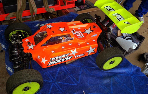 Meine XB9 sind für diese Strecke nur sehr gering vom Baukasten Setup verändert worden, der Nitro hat die Ultra Effizient Bremsbeläge sowie die Lenkpfostenbrücke mit Stütze sowie das Frontgewicht 60 Gramm. Alles m. M. nach sehr sinnvolle Zubehör Teile. Beim Elo sind Gewicht und Bremsen natürlich nicht nötig, bei Ihm habe ich nur das Mitteldiff auf 7000 zum Baukasten geändert. Außerdem verwende ich an den hinteren Dämpfern die Federteller des XB808 2011, diese sind flacher und geben bei Verwendung der 3 Stripes Federn lang mehr Einstellbereich!