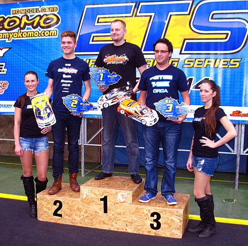 | | Die ETS Saison 2013/14 startete diesmal in Hrotovice in der Tschechei. Das europäische XRAY Team war mit allen seinen Fahrern dabei, darunter auch die Smi Sport Fahrer Tobias Vogel, Valentin Hettrich und Clemens Neubert (Xray Pro Stock) und natürlich auch mit dabei waren die beiden Modifahrer Fahrer Marco Kaufmann und Tim Wahl. Der T4/14 funktionierte auf dem high Gripp Teppich von Anfang an sehr gut.
