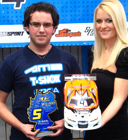 In der XRAY Pro Stock Klasse war die Pole zwischen Valentin und dem Tschechen Marec Cerny, der für das XRAY-Factory Team fährt, hart umkämpft. Valentin, der extrem schnell unterwegs war musste sich am Ende, aufgrund von kleinen Fehlern, nur knapp Marec geschlagen geben. Tobias Vogel landete diesmal leider nur auf Startplatz 4. Andi Myrberg, der ebenfalls auf einem XRAY T4 unterwegs war, landete auf Platz 5, und Jan Ratheisky auf Platz 6, dies waren optimal Voraussetzungen fürs Finale.