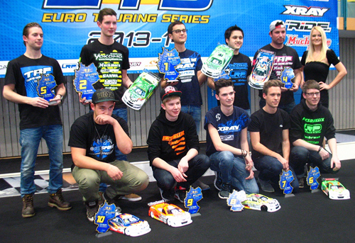 Zuerst an Marec für den Gesamtsieg in der XRAY Pro Stock Klasse, dann Gratulation an Valentin, der es zum erstes Mal bei einem ETS aufs Podium (Pl.2) schaffte und Gratulation an Jan der bei seinem ersten XRAY Einsatz gleich Dritter wird.