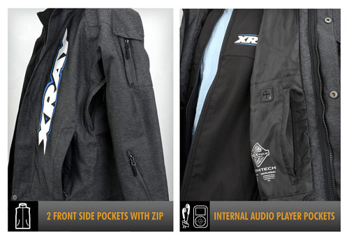 | | Auf der Vorder- und Rückseite der neuen Winterjacke findet sich das speziell erstellte XRAY-Logo. Die Jacke verfügt über eine zweite, herausnehmbare Innenjacke und über seitlich angebrachte Taschen.