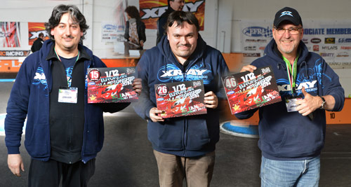 As for my finals, I was able to cruise to a win in A1 as the others got tangled up during the first moments of the race. A2 was more exciting as I was holding a steady 1-2 second lead to Markus Mobers until three laps remained, where I came together with a back marker. Markus made a hard move which put my car out of shape, with only a few corners to go, but gave back the position, showing great sportsmanship. I had won my first European Championship title ever from the TQ spot - a great result for XRAY and the X12! Congrats to Massimo Fantini as well - making the A for XRAY!