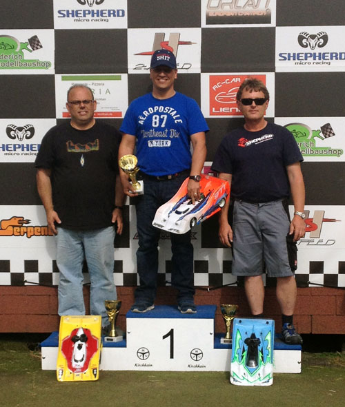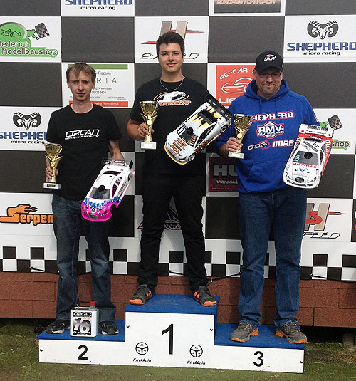 Ein 1/8er - Neuling mischte die VG8 Klasse 1 gleich bei seinem Einstandsrennen auf. Frederik Südhoff, erfolgreicher Elektro-Glattbahnfahrer, übernahm in Vorlauf 2 das Kommando und fuhr gleich TQ vor Phillip Sting und Jürgen Hennemuth.