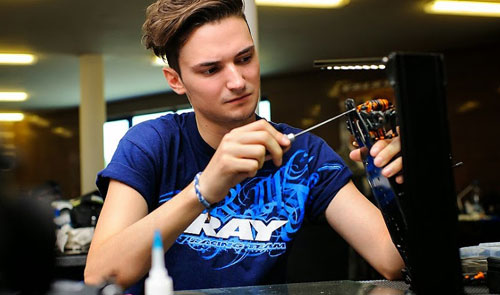 Am Abend ging es dann in den ersten von 4 Vorläufen. Marco K. der hoch motiviert war, fuhr schnelle Zeiten und lag fast immer unter den TopTen. Bei Tim lief es nicht so gut, er hatte große Probleme mit dem Fahrverhalten von seinem XRAY und daher war es nicht verwunderlich, dass er abgeschlagen im Mittelfeld lag.