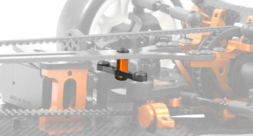 | | Die neue Lenkungsplatte zur direkten Montage auf der Lenkung des T4 ermöglicht das Verstellen des Chassisflex in diesem Bereich. Die Abstimmung kann variiert werden, indem die Platte mit oder ohne orangen Aluverbinder genutzt wird. Je fester das Chassis, desto direkter wird die Lenkwilligkeit und das Handling wird aggressiver.