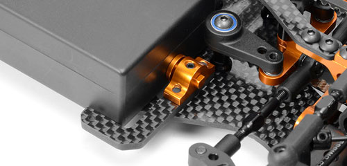 | | Die je nach Hersteller unterschiedlich großen Hardcase LiPo-Akkus lassen sich mit dieser in drei Richtungen verstellbaren Halterung sehr passgenau auf dem Chassis fixieren. Das Set enthält alle für den Umbau notwendigen Teile, welche nebenbei ein Verändern der Front-Heck-Balance um bis zu 4 mm erlauben.