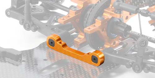 | | Die schnelle Rotation um die Hinterachse des T4 kann mit dem Einsatz des neuen, vor den hinteren Querlenkern anzubringenden Halters, erreicht werden. Einteilig und aus 7075 T6-Aluminium gefräst sowie orange eloxiert, ist dieses sehr leichte Bauteil dennoch extrem stabil. Gerade bei Strecken mit hohem Griffniveau sorgt dieser Halter für eine direktere Lenkung, da die Hinterachse entlastet wird. Selbstverständlich sind die I.S.S. Setup-Optionen auch mit diesem Tuningteil weiterhin nutzbar.