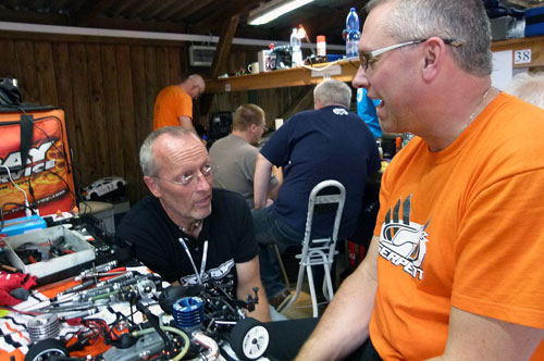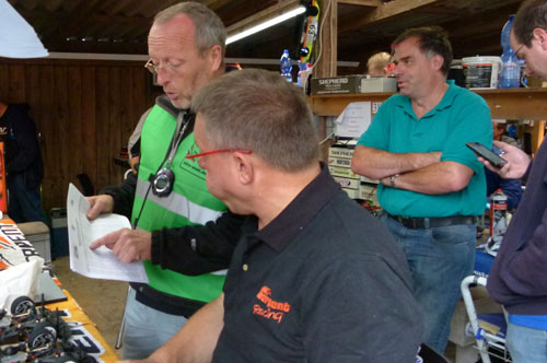 Dominic verbessert sich im 3. Vorlauf auf Rang 2. In Vorlauf 4 und 5 gibt es vorne keine Änderung: Robert vor Dominic, Dionys, Dirk, Patrick Schäfer und Thilo. Jetzt steht noch Vorlauf 6 an. Dominic, der mehrere Motoren an diesem Wochenende ausprobierte, schraubt einen ORCAN RS3 rein. Und fährt TQ, mit 3,7 sec. Vorsprung vor Robert.