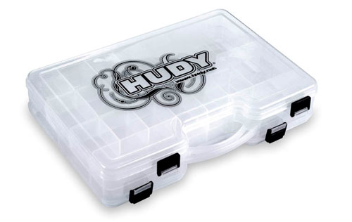 | | Je nach Modell werden zur perfekten Abstimmung auf die Strecke mitunter recht viele kleine Bauteile, Schrauben und winziges Zubehör benötigt. Damit hierbei jederzeit der Überblick gewahrt bleibt, ist nun von HUDY eine sehr robuste und aus schlagfestem Kunststoff gefertigte Box für Kleinteile erhältlich. Eine schnelle Identifikation der Teile ermöglichen die 44 einzelnen Abteilungen aus durchsichtigem Kunststoff. Die kompakten Gesamtabmessungen (290 x 195 x 57 Millimeter), der von beiden Seiten zugänglichen Box ermöglichen zudem ein schnelles Verstauen in jeder Transportkiste.