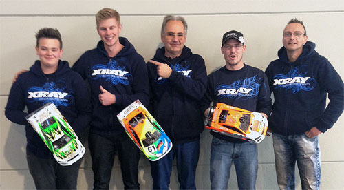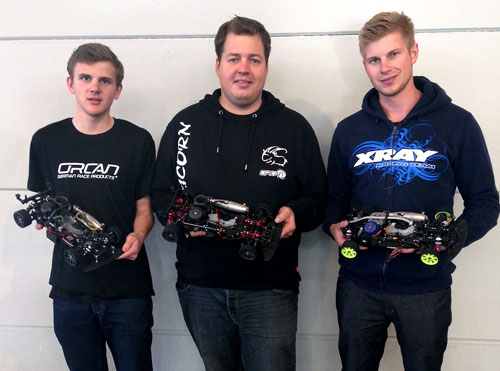 Bild: 3 XRAY Finalteilnehmer von insgesamt 4 vlnr. Jannick Namyslo, Marco Kaufmann mit der schnellsten Runde im Finale, Dennis Sting.