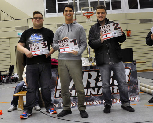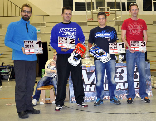 | | Geschafft! Die Saison der „Berlin Touring Masters 2014“ hat am 30.11. in der Carl-Schumann Halle einen würdigen und gelungenen Abschluss gefunden. Zusätzlich zu den drei Klassen der BTM wurde noch ein Freundschaftslauf 1:12 ausgetragen. Insgesamt trafen sich 28 Fahrer um in den jeweiligen Klassen den Meister 2014 aus zu fahren.