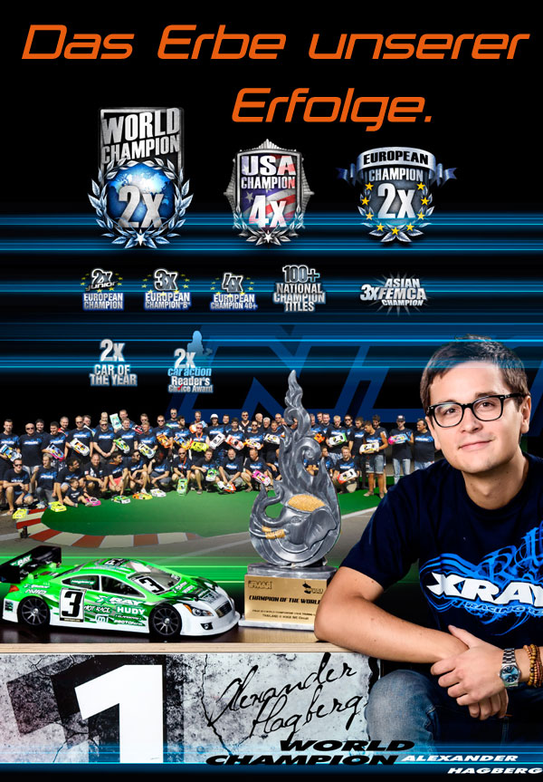 Seit der Präsentation des ersten XRAY NT1 Nitro-Tourenwagens ist XRAY eine der treibenden Kräfte in der 1:10 Nitro-Tourenwagen-Szene gewesen. Durch eine kontinuierliche Entwicklung und Evolution der XRAY Produktlinie konnte deren Leistungsfähigkeit stetig verbessert werden. Zahllose Siege in verschiedensten Klassen auf lokaler, regionaler, nationaler und internationaler Ebene haben XRAY zu dem Standard gemacht, an dem Tourenwagen heutzutage gemessen werden. Die Langlebigkeit und Leistungsfähigkeit, sowie das handwerkliche Können, mit dem XRAY Bausätze gefertigt werden, sind schlichtweg legendär.