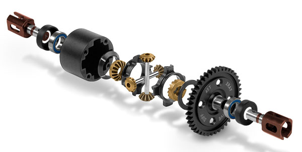 Die Einsätze zur Einstellung können separat getauscht werden, um die Charakteristik unter Last beeinflussen zu können. Das Set enthält alle erforderlichen Teile zum Aufbau eines kompletten Differenzials mit einem 46-Zähne-Kegelrad.