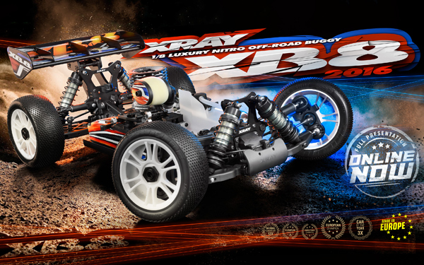 | | Xray hat jetzt detaillierte Informationen über den neuen XB8 ´ 2016 Nitro Buggy mit allen Daten und Fakten auf ihrer Internetseite veröffentlicht. Hier zeigt und präsentiert Xray, die exklusiv in Europa hergestellte neueste Version seiner erfolgreichen 1/8 Plattform XB8 für die neue Saison.