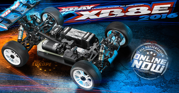 | | Xray hat jetzt detaillierte Informationen über den neuen XB8e´ 2016 Elektro Buggy mit allen Daten und Fakten auf ihrer Internetseite veröffentlicht. Hier zeigt und präsentiert Xray, die exklusiv in Europa hergestellte neueste Version seiner erfolgreichen 1/8 Plattform XB8e für die neue Saison.