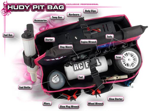 | | Die Taschenkollektion von HUDY wurde um ein Exemplar für den Einsatz direkt an der Strecke erweitert. Die neue Tasche wird hierfür aus hochwertigen Materialien gefertigt, um den Rennalltag unbeschadet überstehen zu können. Zur Verfügung stehen zwölf Einschübe in den unterschiedlichsten Größen. Die Aufteilung der Tasche wurde speziell für das Verstauen von Zubehörteilen wie Starterboxen, Schraubendrehern, Spritflaschen, Reifensätzen oder ähnlichem konzipiert. Der schnelle Service zwischendurch gelingt hiermit ohne Probleme – zusätzlich sieht die Tasche mit dem HUDY-Logo einfach stylisch aus und lässt sich für den Transport einfach zusammenfalten.