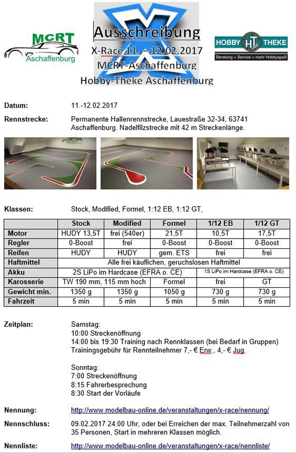 Registrieren Sie sich für die dritte Runde der XRS Racing Serie Deutschland die in Aschaffenburg am 11.-12. Februar 2017 stattfinden wird. Die Registration ist geöffnet, machen Sie mit, und melden Sie sich an.