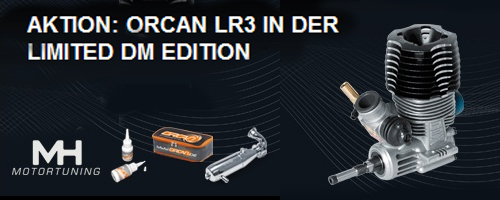 | | Ab sofort gibt es den Siegermotor der Deutschen Meisterschaft 1:10 Verbrenner-Tourenwagen 2009 im attraktiven Produktbundle mit ORCAN Motorentasche, Resonanzrohrsystem und Motorpflegeöl zum Sonderpreis. Auch als MH Variante!