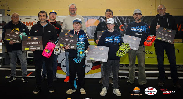 In a very close battle with Christian Donath I could win two out of three finals, which gave me the overall win in 1/12 Modified. Feel pretty much thankful for all Xray does for me, took some time to be back on the middle spot of the podium. In GT it was superclose as well. Mika won the first final, Dirk Bräuer won the second final and Louis had two second spots. So all was decided in the third final. When the tone rang Louis took off and was gone. He won the final by quite a margin. Now it was a battle between Dirk and Mika for the entire 8 min race. Mika needed a 2nd to win overall, but some little mistakes gave Dirk second spot. This gave Louis the overall win.