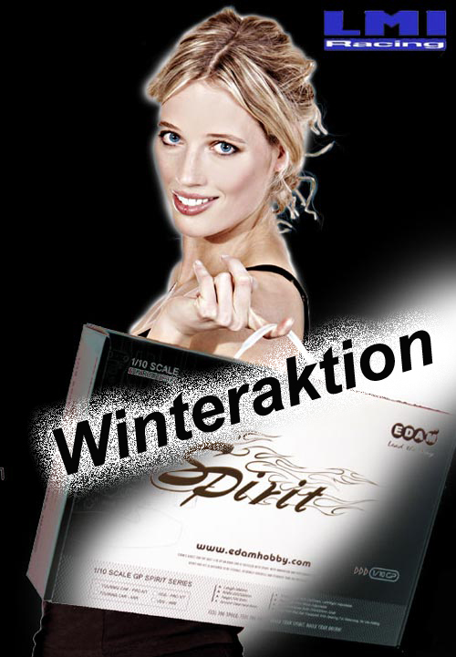 | | LMI Racing liefert im Zuge seiner Winteraktion den EDAM Spirit 981/982 im Maßstab 1:10 zu einem reduzierten Preis. Bei diesem Modell handelt es sich um ein voll wettbewerbstaugliches RC Car für die Klasse VG 1:10 Scale, das für den erfahrenen RC Car Piloten aber auch für den Neueinsteiger in den RC-Car Sport entwickelt wurde.