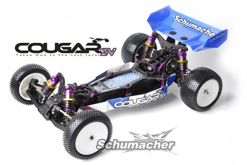 | | Nach vielen Spekulationen ist es endlich soweit, Schumacher Racing präsentiert seinen neuen Cougar SV 2WD Wettbewerbs Buggy für die Klasse 1/10 Off Road. Schumacher bleibt auch der Tradition, außergewöhnliche Modelle zu entwickeln treu, was auch beim neuen Cougar SV wieder zutrifft. Die zukunftsweisende Technologie geht Hand in Hand mit der hohen und präzisen Fertigungsqualität. Komplett neu konstruiert und getestet vom einem der angesehenen Design-Guru in der R/C Industrie, bewahrt der Schumacher Cougar SV diesen Mythos und verbindet neueste Technology mit ausgefeilter moderner Technik.