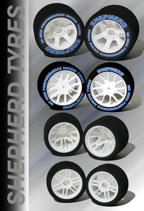 | | In Zusammenarbeit mit seinem langjährigem Lieferanten Enneti hat sich Shepherd dazu entschlossen, eine eigene Moosgummi Reifen Serie auf den Markt zu bringen. „Shepherd Tyres“ überzeugen sowohl durch optimalen Griff als auch durch geringen Reifenverschleiß bei einem attraktiven Preis. Alle Reifen sind auf weißen Standard-Felgen als auch auf Light Felgen erhältlich. Zusätzlich zu den 1:8er und 1:10er Reifen sind auch Reifen für 1:12er Modelle ins Programm aufgenommen worden.