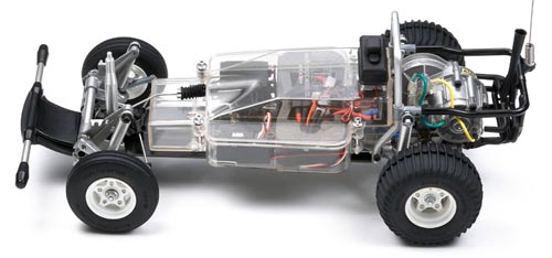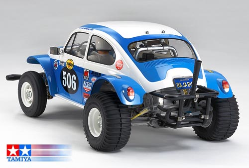 | | Tamiya ist seit über 3 Jahrzehnten dafür bekannt, schöne, schnelle und beliebte Autos als Modell nachzubauen. So wurde bereits vor 30 Jahren dem Volkswagen Käfer der legendäre Tamiya Sand Scorcher im Maßstab 1:10 gewidmet. 2009, zum 30-jährigen Jubiläum präsentiert Tamiya die Wiederauflage des Sand Scorcher wie vor 30 Jahren als Bausatz. Die technische Basis entspricht dem Urmodell, jedoch gab es einige Neuerungen für den Sand Scorcher 2010, wie z. B. neue Querlenker, Radträger und ein moderner elektronischer Fahrregler. Weitere Bauteile wurden verstärkt, um eine zeitgemäße Stabilität des 40 cm langen Modells zu gewähren. Zur Serienausstattung gehören eine robuste Fiberglas-Chassisplatte, ein umfangreicher Kugellagersatz, ein robuster Elektromotor und Öldruckstoßdämpfer. Beim Design der Kunststoffkarosserie bleibt alles beim Alten, dies wird sicher nicht nur Nostalgiker erfreuen.